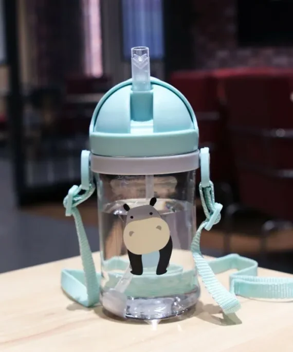 350ml Kids Drinking Cup Feeding Bottle With Straw Gravity Ball Wide Caliber Bottle