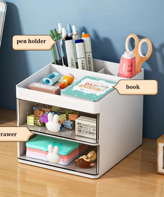 Small Desk Organizer With Drawer, Office Desktop Storage Box Makeup Organizer Business Card/Pen/Pencil/Mobile Phone/Stationery
