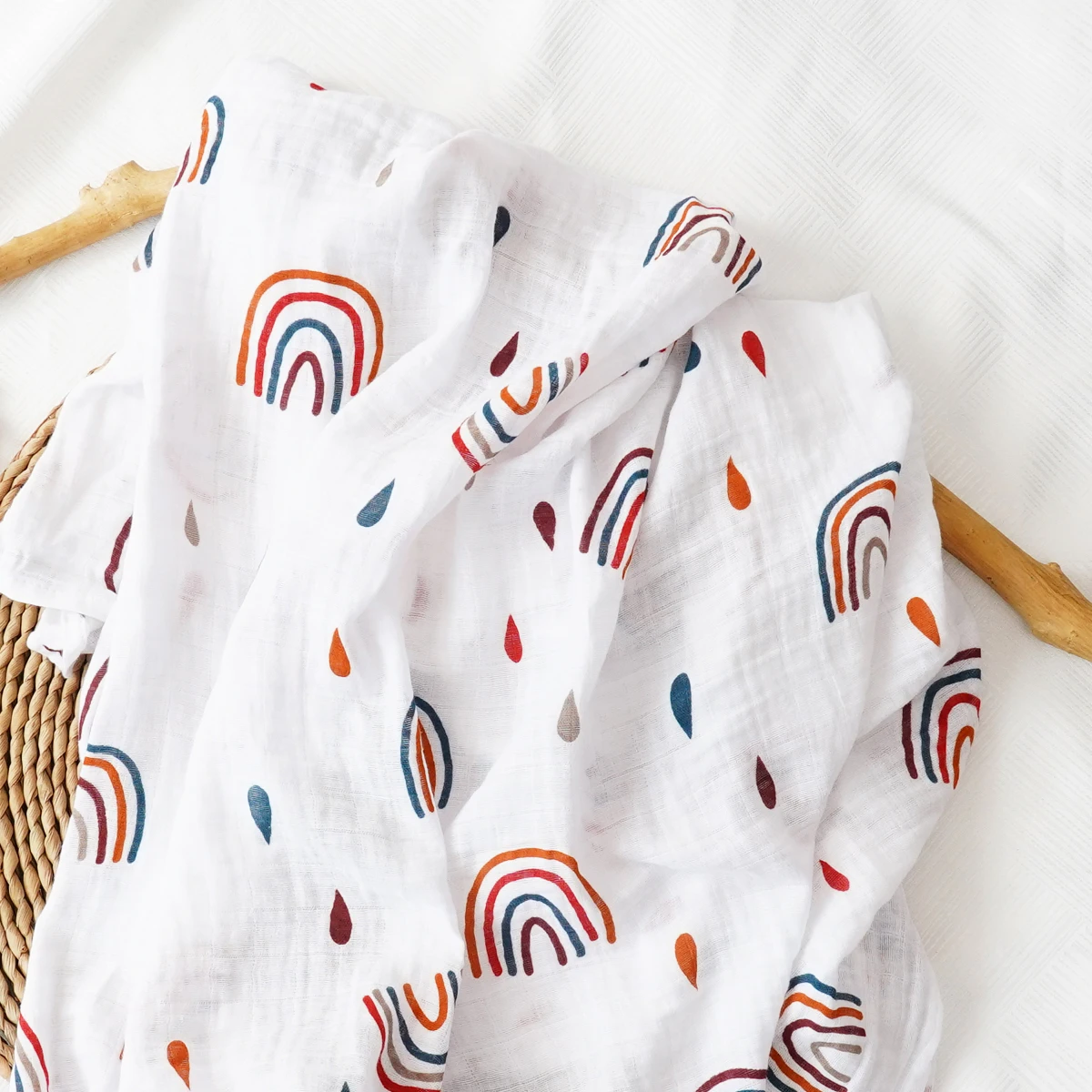 Your muslin wrap is gentle against new, sensitive skin and helps to regulate a child's temperature and prevent overheating—perfect for hot summers and cold winters. When swaddling, the stretchy fabric mimics the feeling of being in the womb, promoting better sleep.