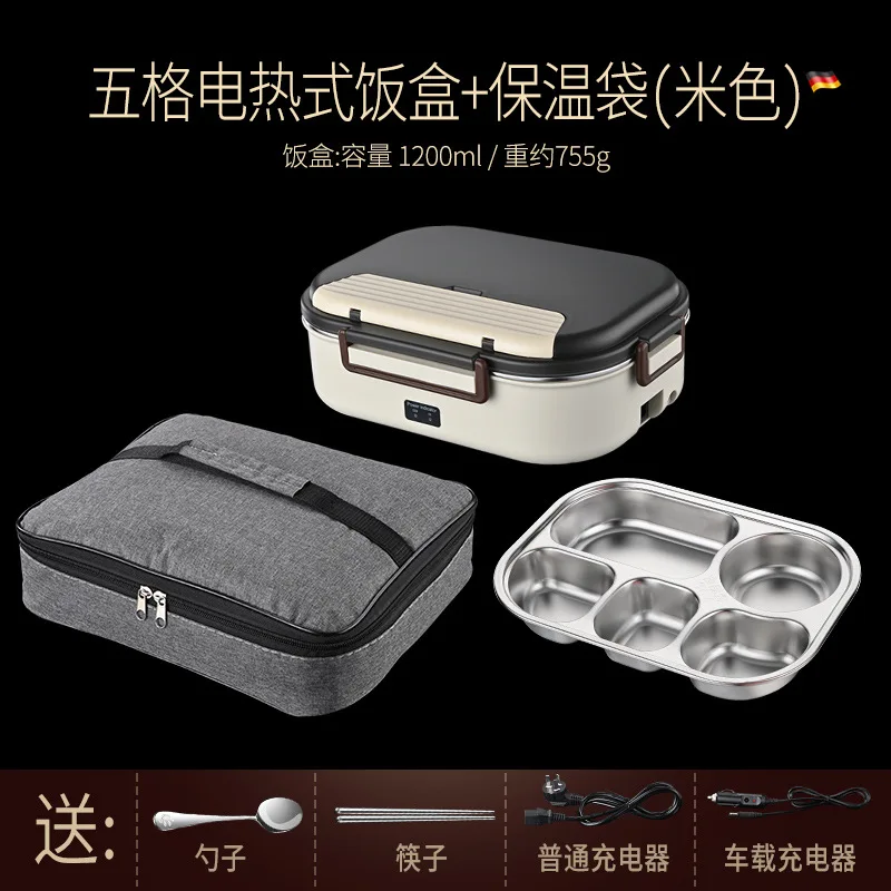 Electric Heated Lunch Boxes Stainless Steel Food Insulation Bento Lunch Box Home Portable Keep Warm Lunch Box with Storage Bag