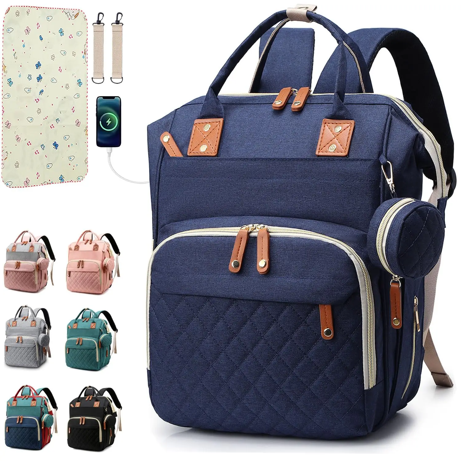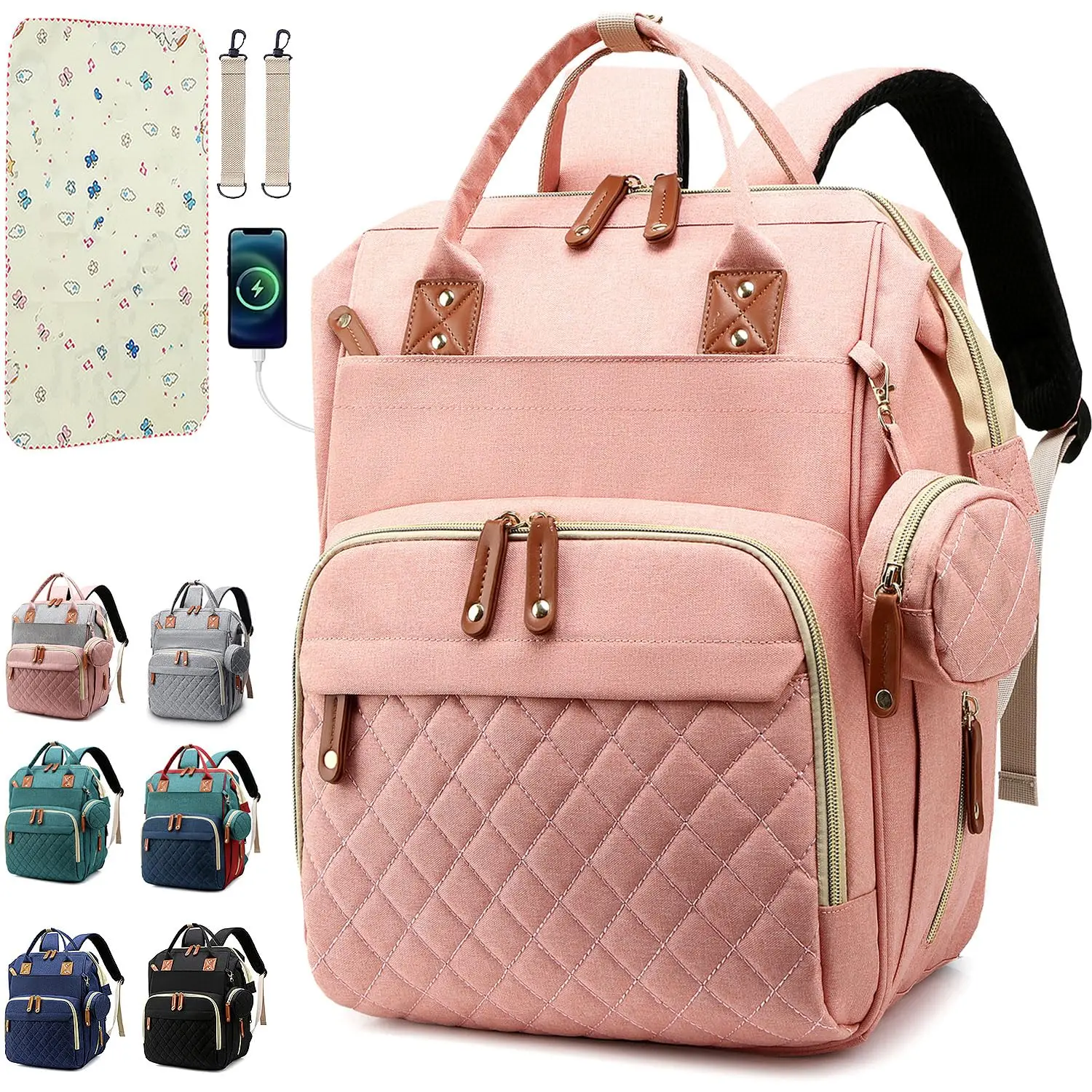 Thoughtful Friendly Design: A little case can hold pacifier and get it quickly. Tissue pocket with zipper is cleaner. 2 stroller straps can hang the bag on the stroller. The easy-grab top handle also makes it to be a tote. Ergonomic back design and thick padded shoulder strap make you feel comfortable and relaxed.